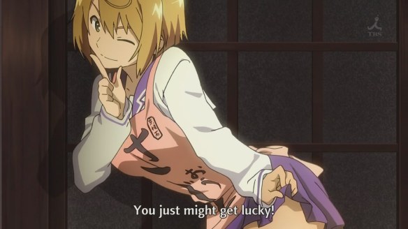 Other characters include: neurotic grandpa, monk dad, moe imouto shrine maiden character, retard male friend, and of course the obligatory childhood friend character, who will inevitably lose in her quest for Furuya’s heart because that’s what childhood friends do, they lose.