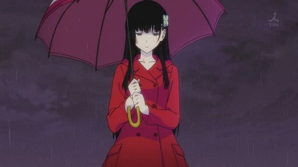 First things first. I am quite honestly surprised that Studio DEEN managed to create such a quality show. After such masterpieces as the original F/SN anime and Korean Zombie Desk Car, I can be forgiven for being rather apprehensive about the quality of this show. But it seems like DEEN has taken some pointers from SHAFT. Monochromatic shots, shots that focus on the character’s contorted face, with only a few colors and no background. Several scenes would not have been amiss if they were found in Bakemonogatari, minus the often convoluted dialogue that is Nisio Isin’s trademark. Oh, and the OP is sung by nano.RIPE, of Hanasaku Iroha fame.