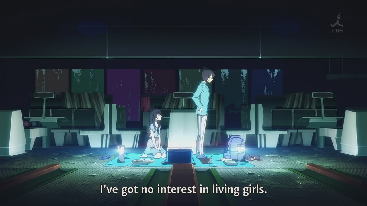 And of course, Furuya eventually meets the titular character, Sanka Rea. Beautiful, innocent, rich, ojou-sama character with a hime cut. Oh, and blue eyes. And boobs. She’s been visiting this abandoned…bowling alley? (see first picture) to vent out her frustrations with her life. Her high birth and her controlling father essentially means that she’s unable to live a normal life as a Japanese high school girl. Oh, and her dad occasionally takes naked pictures of her to, uh, “measure her growth”.