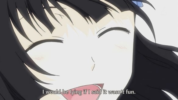First things first, Rea’s voice is really growing on me. I had some doubts at first with the casting but her voice, while not extraordinary, does fit her role quite well. The SHAFT imagery, while not as apparent as it was in episode 01, is still present (i.e. where the hell did that bowling ball come from, anyway?). The little details with Rea’s limping (and the accompanying sounds) are a nice touch. We also begins to see the flowering of Rea and Furuya’s beautiful pure and innocent relationship.