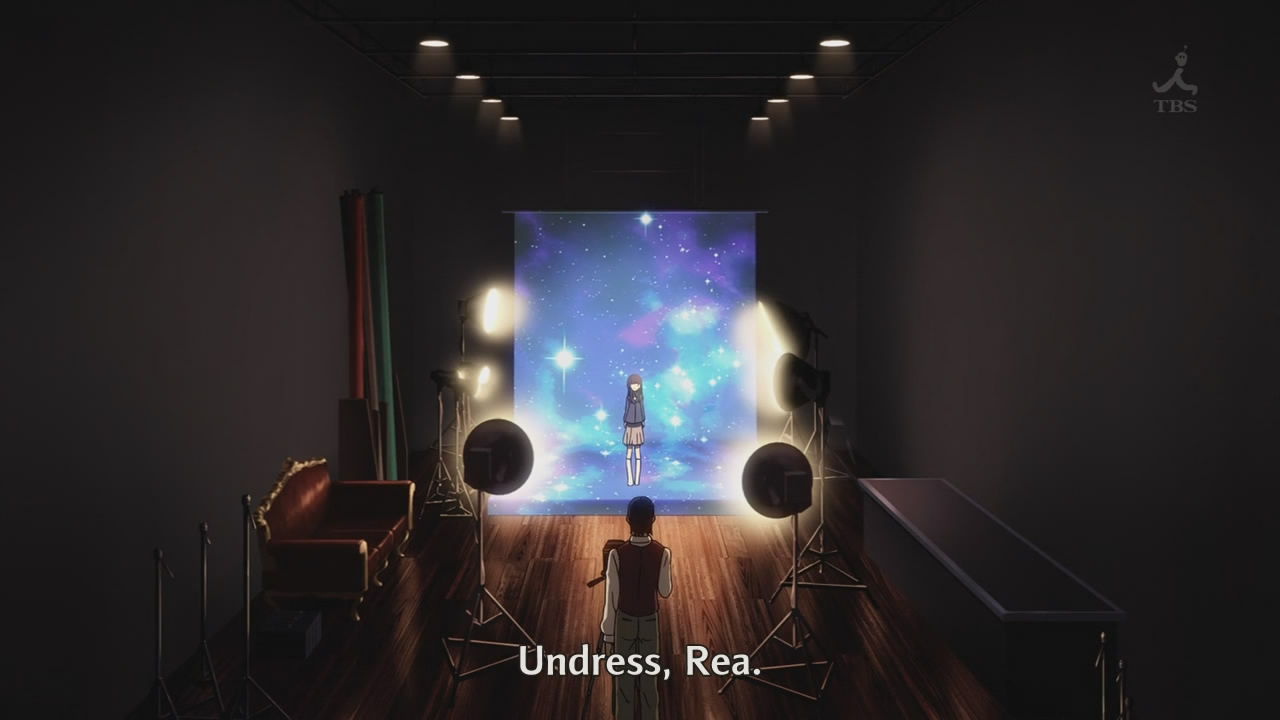 The manga does mention the fact that Rea’s father has been taking pictures of her naked under the pretext of “measuring her growth”, but if I recall it was played off as more of a gag. While her father is overbearing and restrictive and a bit of a creep in the manga, it pales in comparison to the depiction in the anime. Part of it is us seeing this from Rea’s POV and hearing her inner thoughts about her father…and the other part is because his creepiness was cranked up to eleven for this episode.