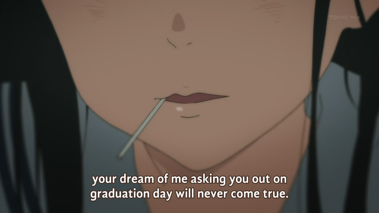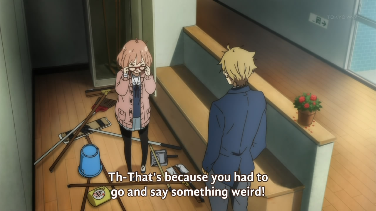 I wasn’t kidding about the Hyouka comparisons, by the way. This show also features a literature club, complete with Chitanda lookalike. Only, this one is voiced by Nagato Yuki and is rather frank with her words. And also about 73% less curious.