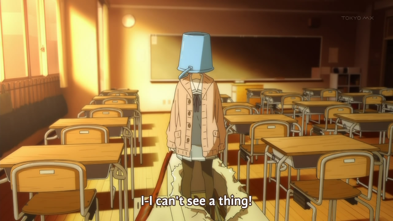 “I really hate meganekkos (tl note: meganekkos means glasses-wearing girl)”, said no one ever in the history of the world. And that is what this show is about. Girls wearing glasses. The demon-slaying and school life segments are merely a sideshow. After the gloriousness of Hyouka, Kyoani embarked on a shameful journey consisting of chuunis and homoerotic swimmers. But that’s all in the past. Get ready for… Hyouka Part 2: Glasses-wearing Demon Hunters.