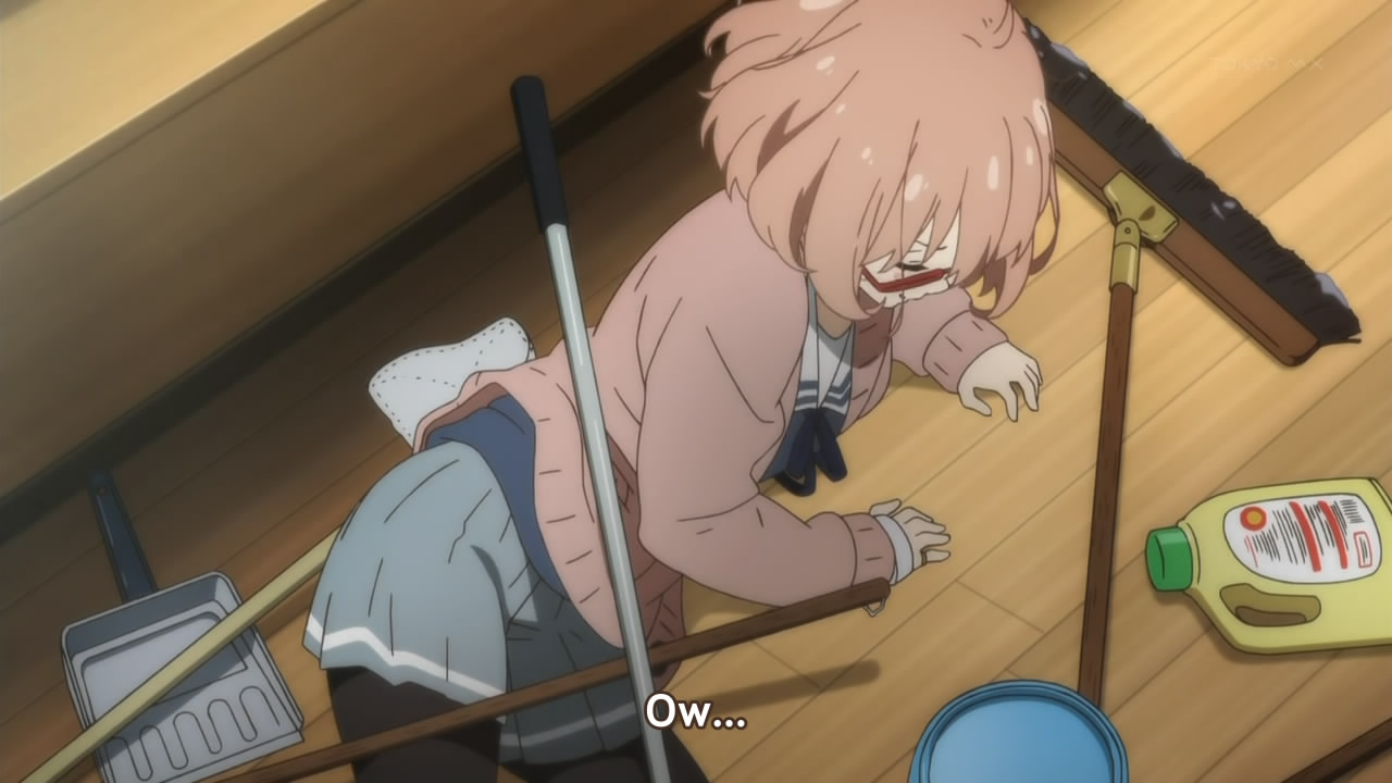 2. Well, there’s still a fourth character yet to be introduced (Mitsuki’s brother, also in the Lit. club), and from the bits we’ve seen of him in the first episode I’ve been getting a bit of a sinister vibe from him. Honestly, I’d be fine with this show being slice of life with fantasy elements. And considering that Kyoani hasn’t done any real “dark” shows since FMP!:TSR, I can’t really see anything changing with this show.